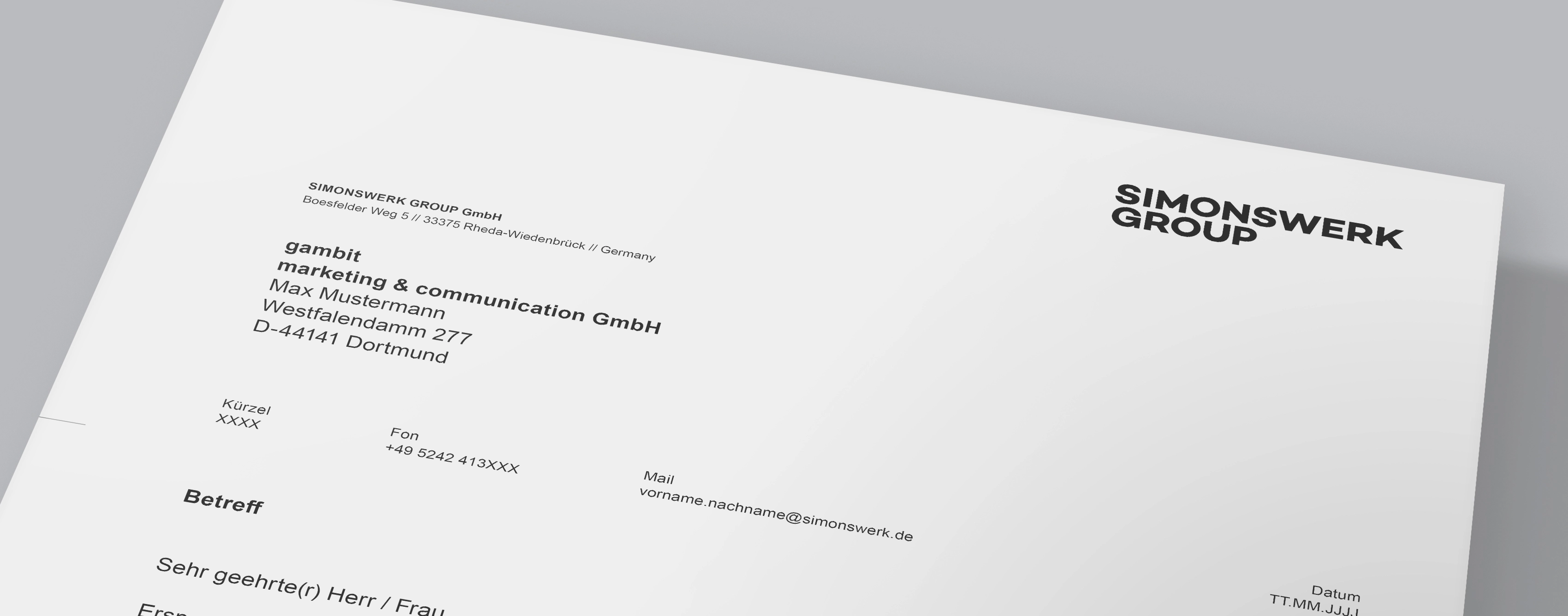 Die Visitenkarten für alle Mitarbeiter der SIMONSWERK GROUP werden zentral über das GROUP Marketing erstellt.