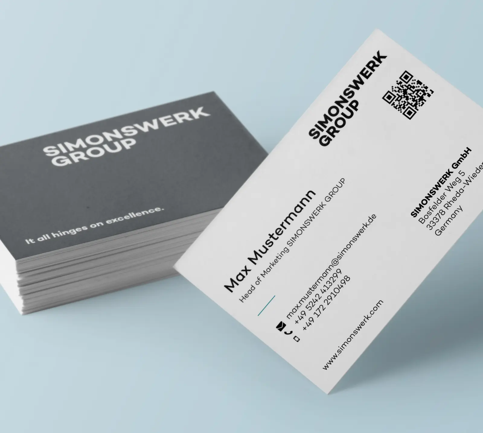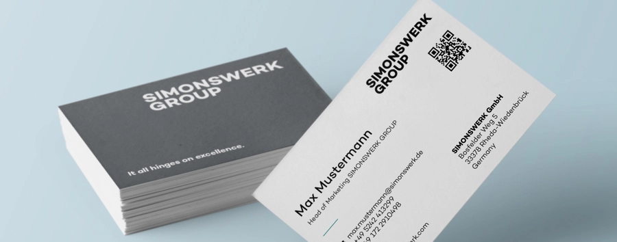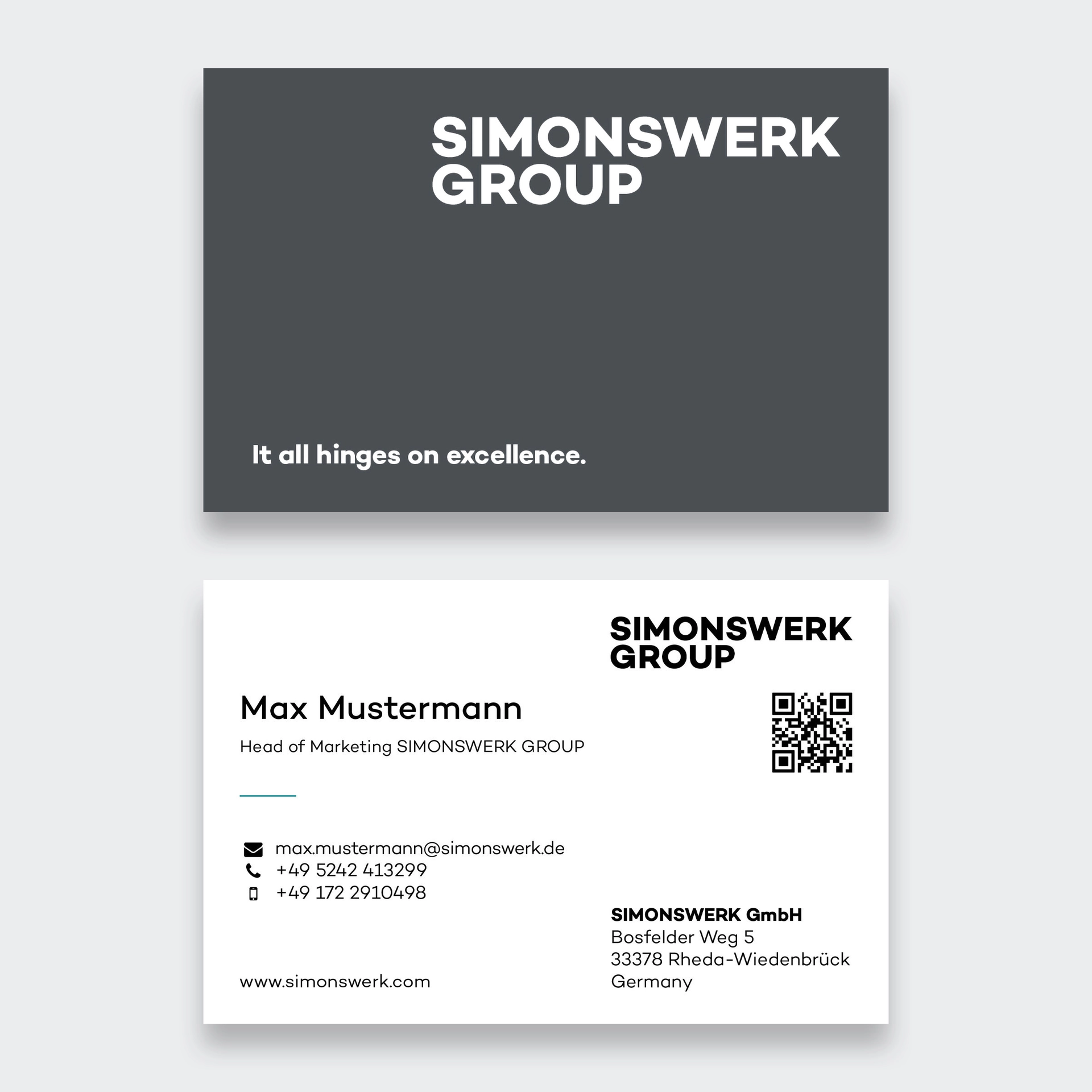 The business cards for all employees of the SIMONSWERK GROUP are centrally created by GROUP Marketing.