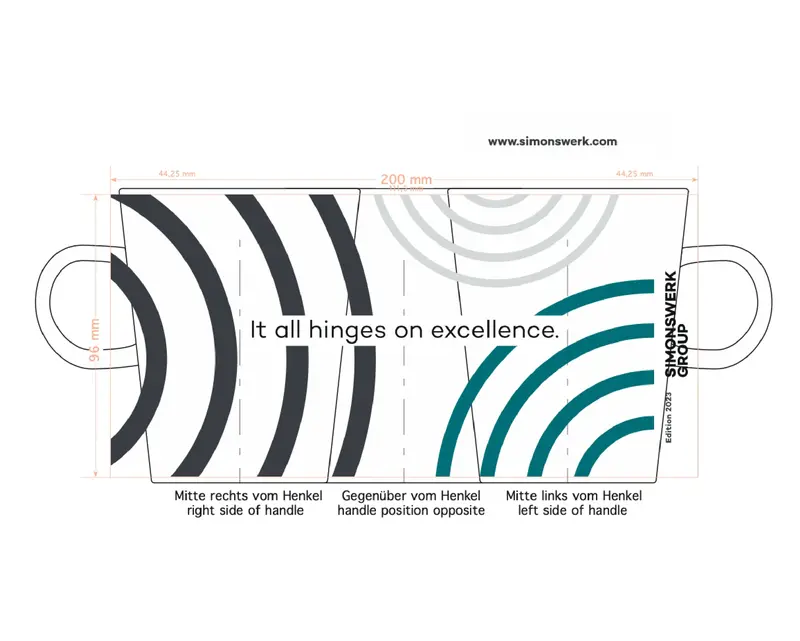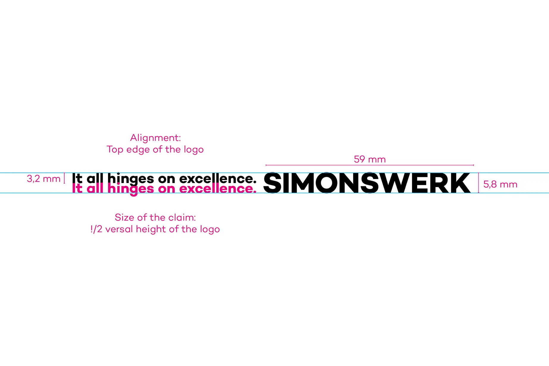 The claim has a fixed size on the brochure title (e.g. DIN A4), or if it is placed next to the logo. It is then aligned with the top edge of the logo and is in a fixed ratio to the logo size: half the height of the logo.