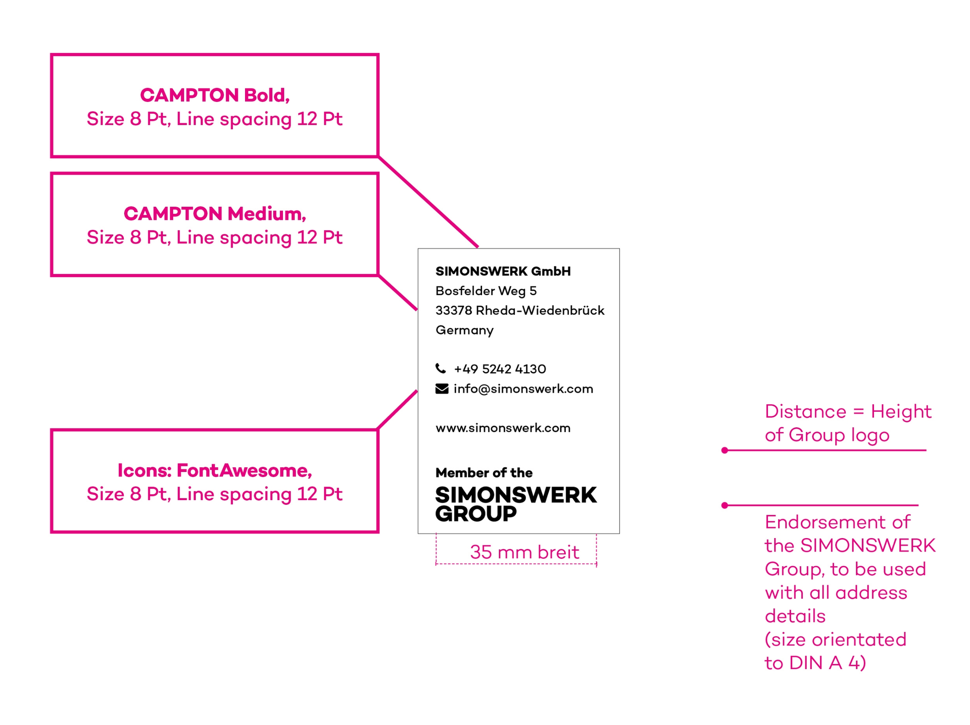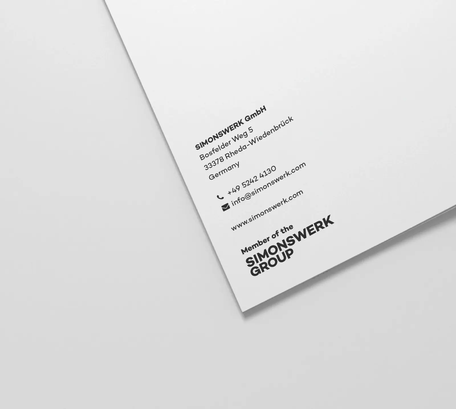 the SIMONSWERK GROUP endorsement (brochures, leaflets, etc.) is always placed under the address block