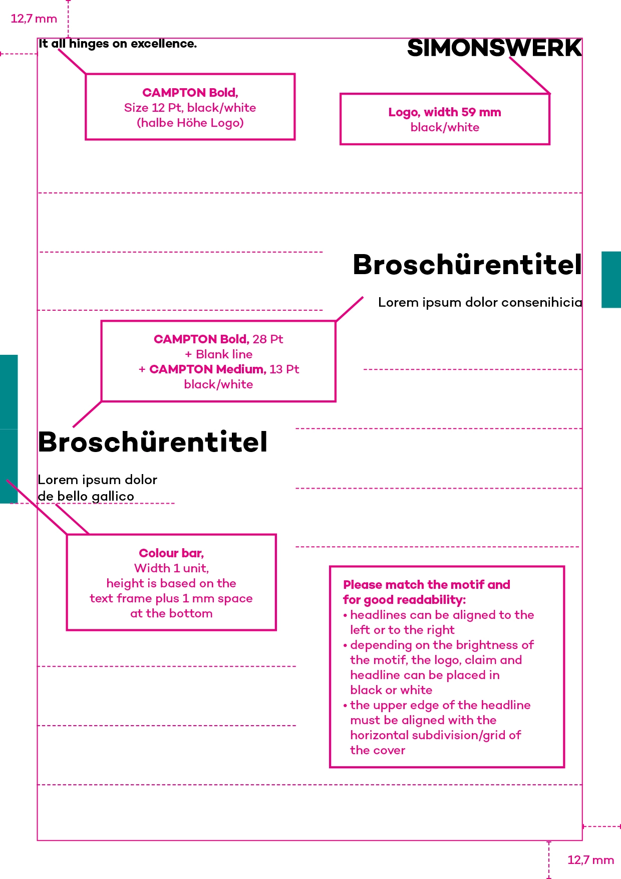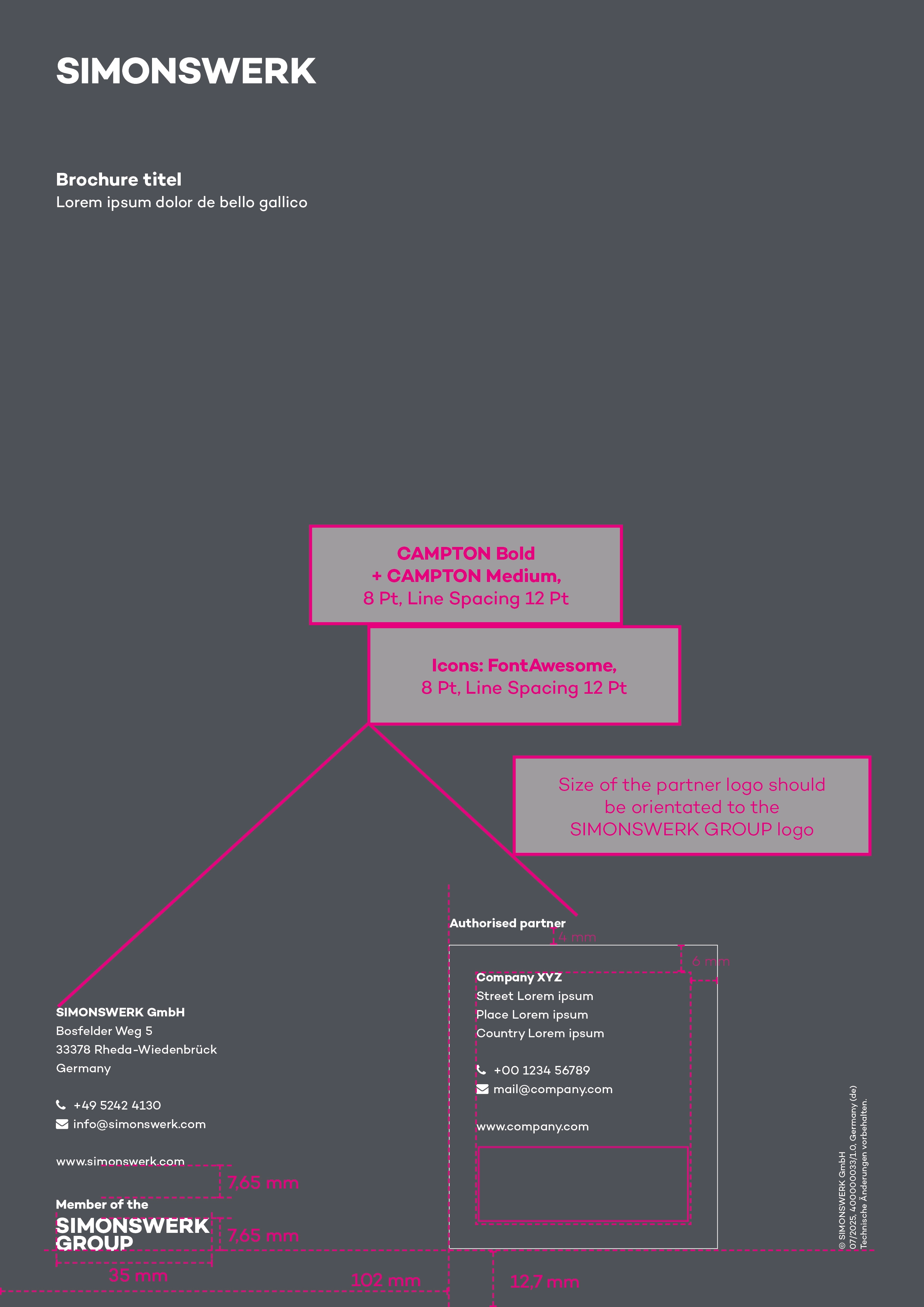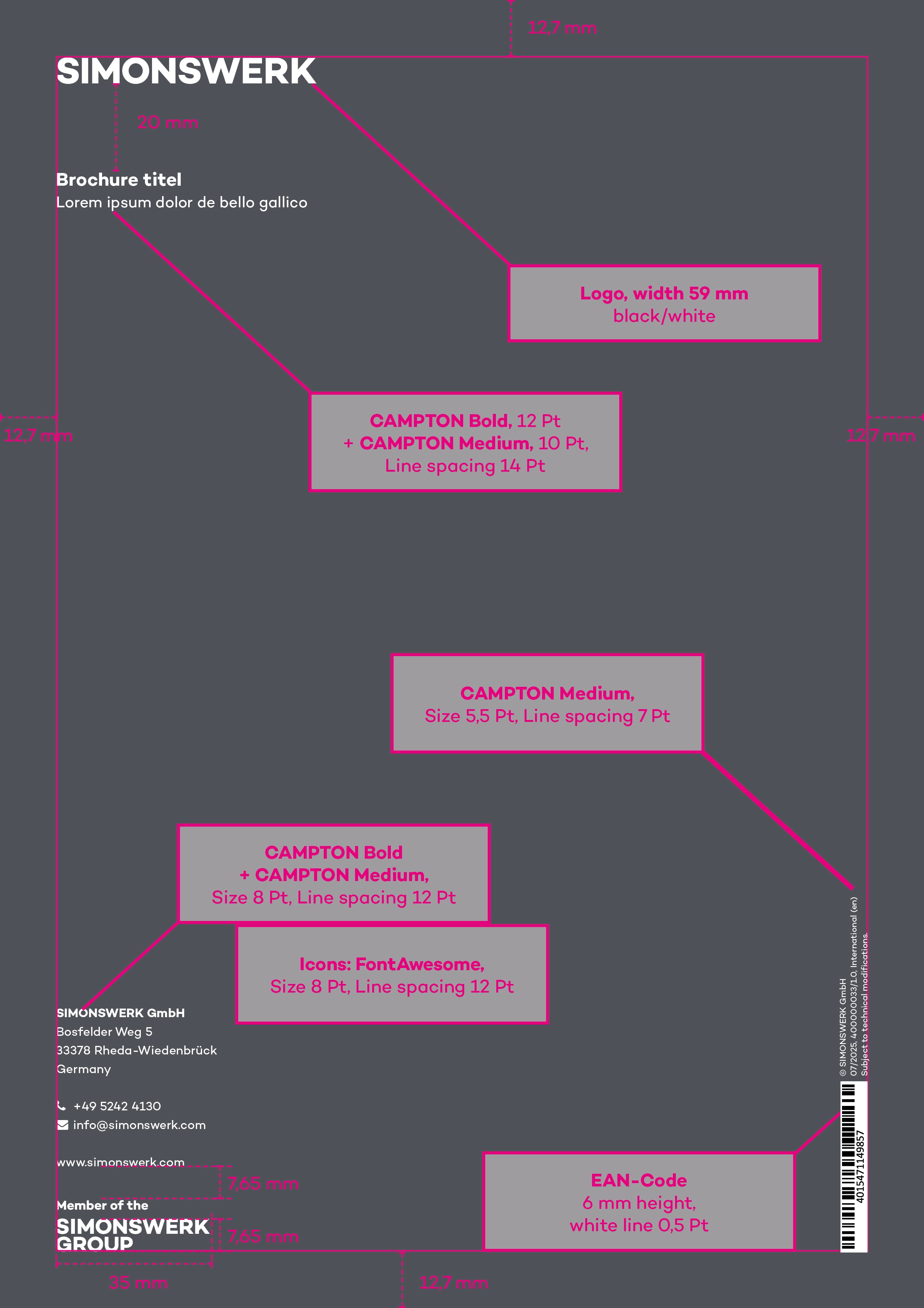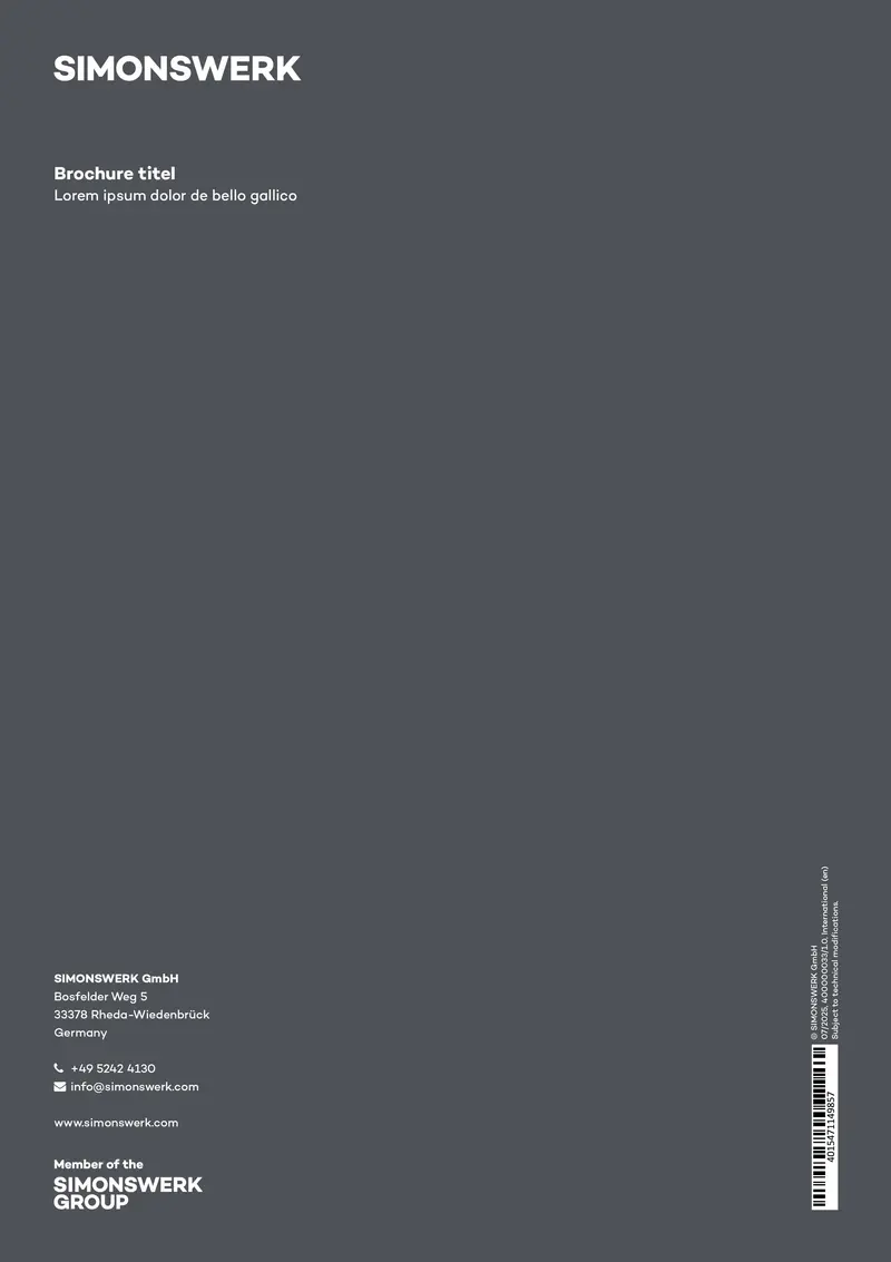 In the template you will find examples of page types and elements for the design of new brochures.