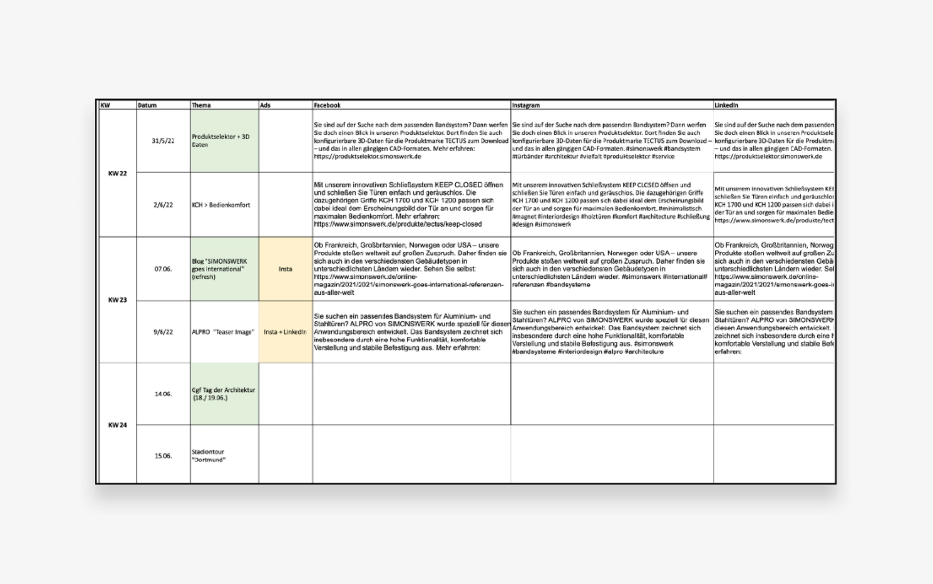 The regional managers responsible for social media must be named to GROUP Marketing. Editorial coordination with GROUP Marketing takes place on a regular basis.